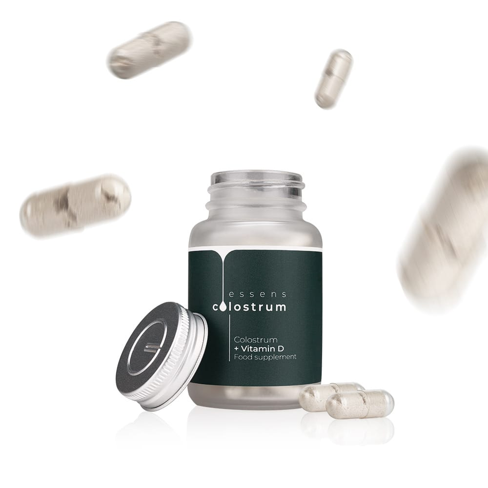 What is Colostrum? Colostrum is the first milk, produced by the mammary glands after mammals give birth. Contained within are all necessary, ready-made antibodies to protect against infection in the early weeks of life. Colostrum is valued for its high content of vitamins (A, D, E, C, B1, B2, B6. B12, folic acid, pantothenic acid, biotin, niacin), minerals, trace elements (sodium, potassium, calcium, phosphorus, magnesium, iron, iodine, chromium), proteins and protease inhibitors. Colostrum contains antibodies which are effective against bacteria, viruses and fungi. It also contains Lactoferrin – a multifunctional protein which reduces inflammation in the body. Vitamin D contributes to the normal function of the immune system. ESSENS Colostrum comes exclusively from bovine (cow) farms with permanent veterinary control in the Moravian- Silesian Region. Further processing takes place in a pharmaceutical company that is certified with GMP under the auspices of WHO – (World Health Organization) and HACCP – (system of risk analysis and determination of critical control points) and under the auspices of the Ministry of Agriculture of the Czech Republic according to EU directives. ESSENS Colostrum + vitamin D was developed and is manufactured under pharmaceutical supervision in the Czech Republic, in compliance with the strictest EU rules and standards. The active substances are obtained exclusively from natural sources without the use of chemically prepared raw materials. Only raw materials of the highest possible quality are used for production. Does not contain sugar or gluten. Contains lactose, but thanks to it’s very low amount, the ESSENS Colostrum + vitamin D supplement is very well tolerated by people with an intolerance.